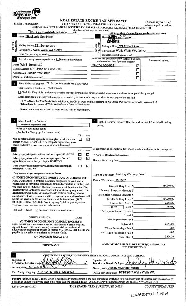 | Mailing Address: | 721 SCHOOL AVE WALLA WALLA, WA 99362 | % Ownership: | 100.0000000000% |