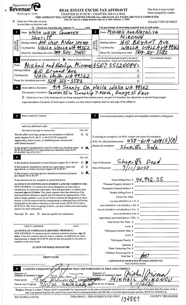 | 1 | 09/11/2020 | SHERIFFS D | SHERIFFS DEED | JOHNSTON E LEE ESTATE OF | MIRONOV MIKHAIL & NATALIYA | | | $47,866.00 | 139887 | 2020-09237 |