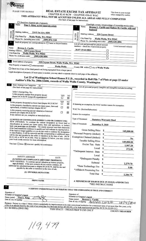 | 6 | 06/05/2009 | WARRANTY D | WARRANTY DEED | WALLA WALLA HOUSING AUTHORITY | KING, TINA L | | | $187,200.00 | 116844 | 2009-05668 |