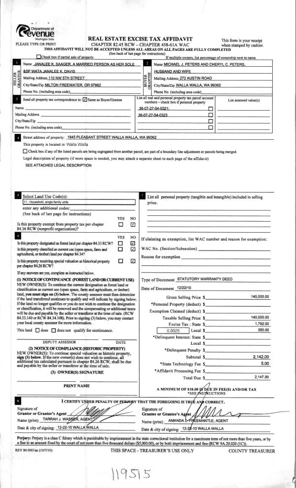 | 2 | 12/27/2010 | WARRANTY D | WARRANTY DEED | DAVIS JANALEE K | PETERS MICHAEL J & CHERYL C | | | $140,000.00 | 119515 | 2010-10735 |