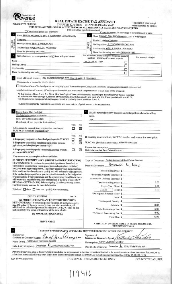 | 2 | 12/07/2010 | WARRANTY D | WARRANTY DEED | BLUUM HOLDINGS LLC | CHAMELEON PROPERTIES LLC | | | | 119416 | 2010-10051 |