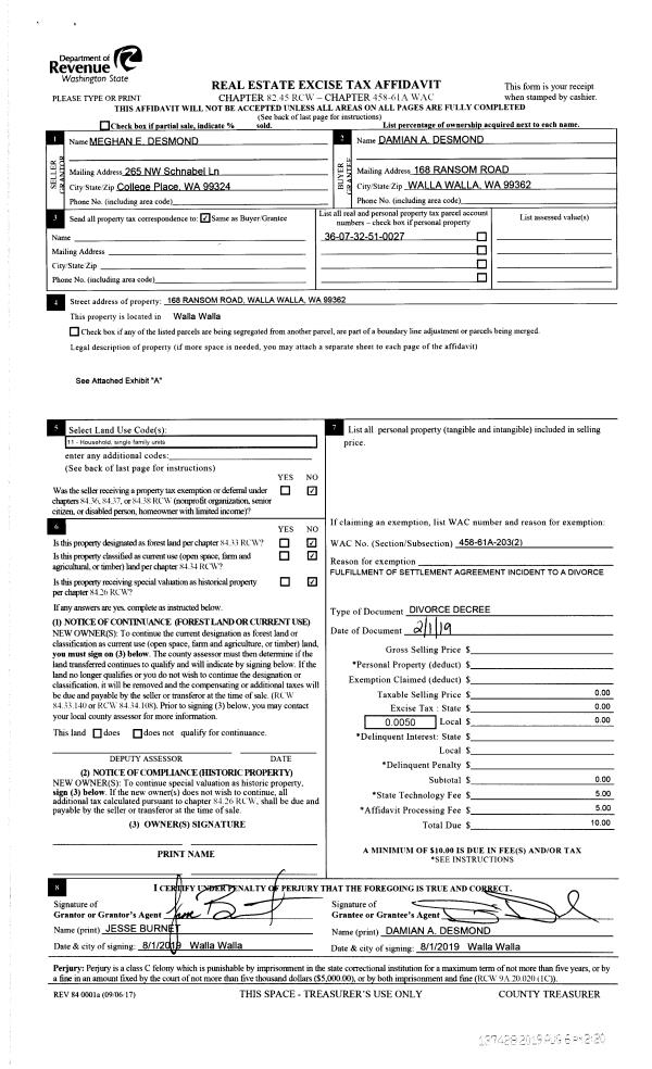 | 1 | 08/06/2019 | COURT CASE | COURT CASE | DESMOND DAMIAN & MEGHAN | DESMOND DAMIAN A | | | $0.00 | 137428 | CC 18-3-00210-36 |