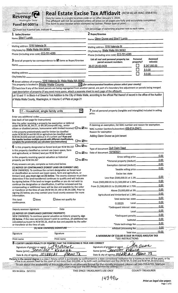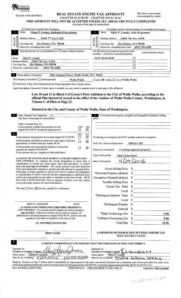 | 3 | 04/29/2016 | QCD | QUIT CLAIM DEED | GRUNER GLEEN P | LUNDY SIBYL F | | | | 130142 | 2016-03295 |