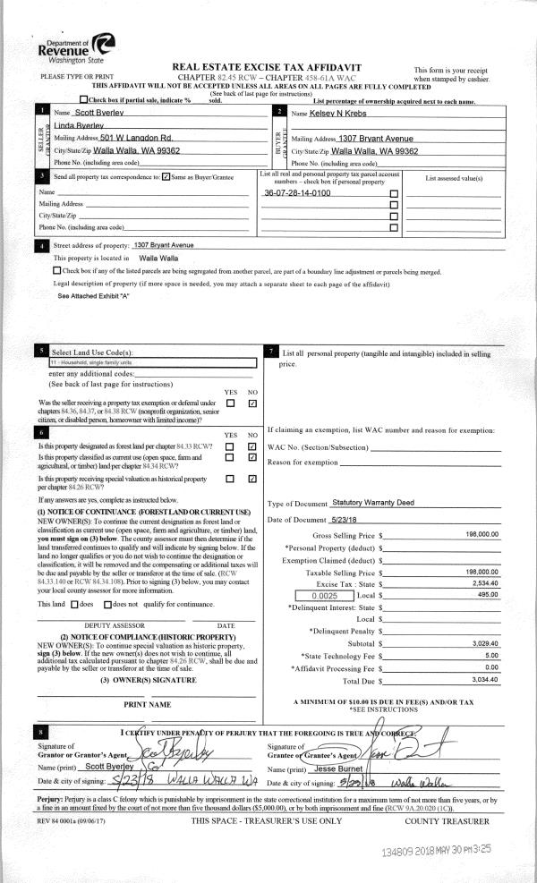 | 2 | 05/30/2018 | SWD | STATUTORY WARRANTY DEED | BYERLEY SCOTT & LINDA | KREBS KELSEY N | | | $198,000.00 | 134809 | 2018-04278 |