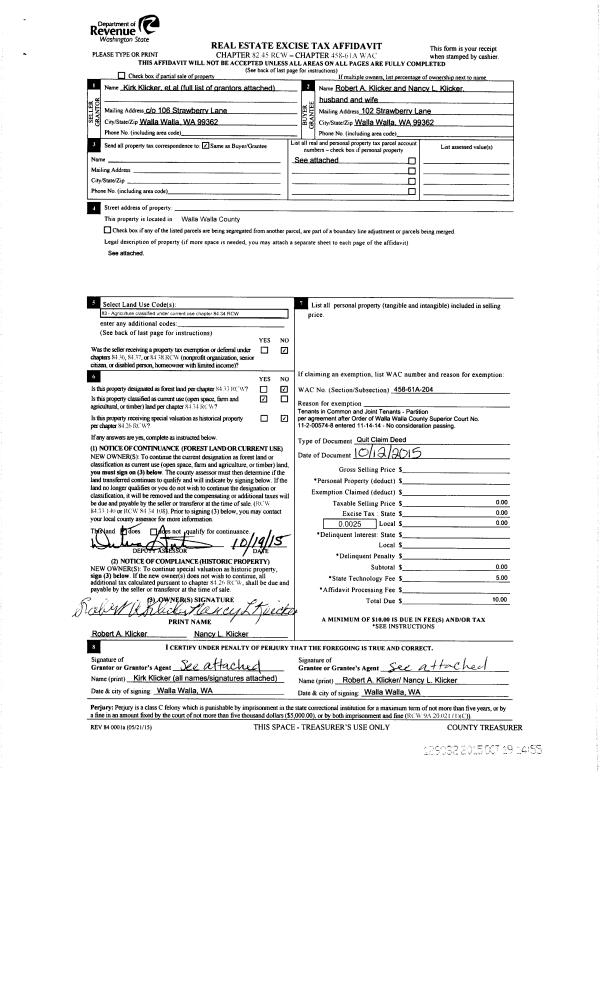 | 4 | 10/13/2015 | QCD | QUIT CLAIM DEED | KLICKER ET AL | KLICKER DELBERT WAYNE ET AL | 2 PARCELS | | | 128992 | 2015-08990 |