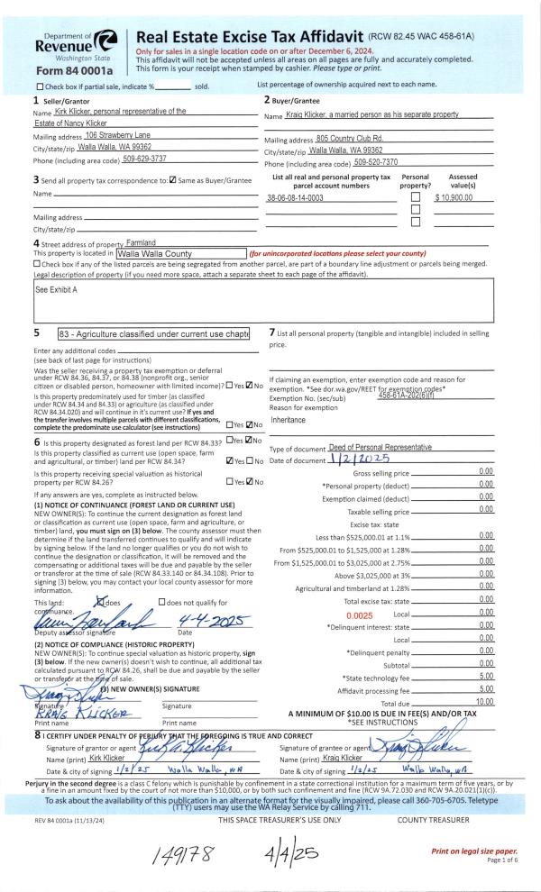 | 3 | 04/04/2025 | DPR | DEED OF PERSONAL REPRESENTATIVE | KLICKER NANCY L ESTATE OF | KLICKER KRAIG | | | | 149178 | 2025-01788 |
