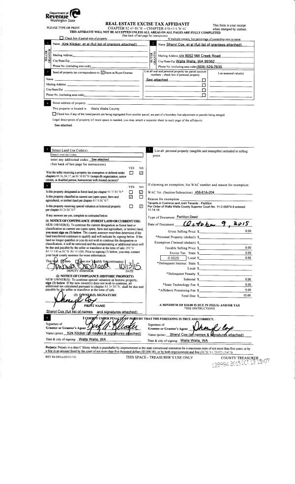 | Mailing Address: | COX LIVING TRUST 9052 MILL CREEK RD WALLA WALLA, WA 99362 | % Ownership: | 100.0000000000% |