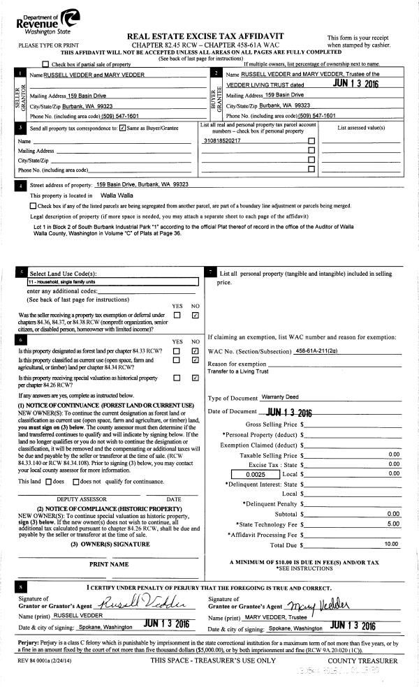 | Owner: | VEDDER LIVING TRUST | | |