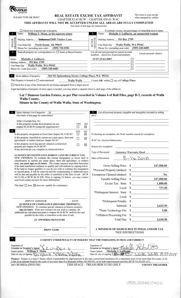 | 2 | 08/17/2018 | SWD | STATUTORY WARRANTY DEED | MOON WILLIAM F | LALIBERTE MICHELLE J | | | $147,500.00 | 135351 | 2018-06770 |