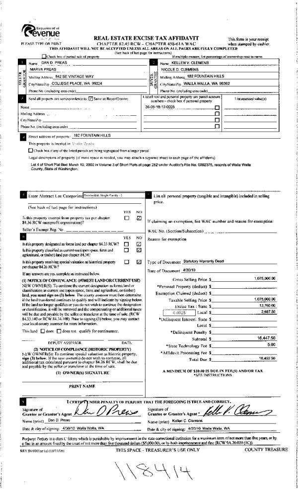 | 3 | 04/30/2010 | WARRANTY D | WARRANTY DEED | PREAS, DAN D & MARVA | CLEMENS, KELLEN V & NICOLE D | | | $1,075,000.00 | 118414 | 2010-03393 |