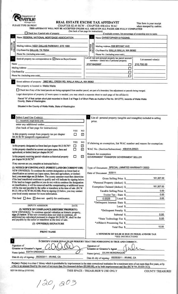 | 4 | 05/31/2011 | WARRANTY D | WARRANTY DEED | FEDERAL NATIONAL MORTGAGE ASSO | FIGGINS, CHRISTOPHER S | | | $161,307.00 | 120203 | 2011-04158 |