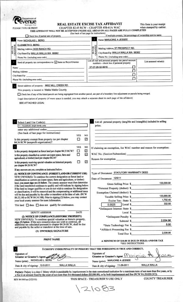| Mailing Address: | 6652 MILL CREEK RD WALLA WALLA, WA 99362 | % Ownership: | 100.0000000000% |