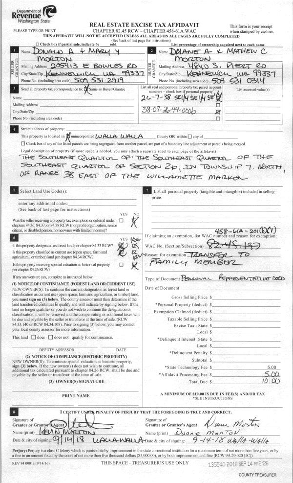 | 2 | 09/14/2018 | DPR | DEED OF PERSONAL REPRESENTATIVE | MORTON DONALD A & MARY Y | MORTON DUANE A | | | $0.00 | 135540 | 2018-07659 |