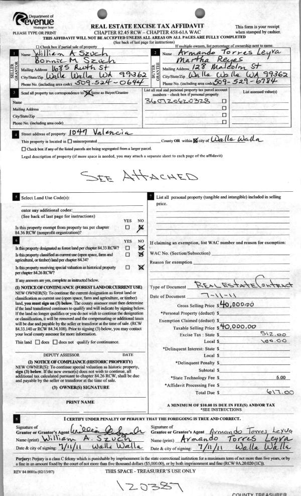 | 2 | 07/11/2011 | WARRANTY D | WARRANTY DEED | SZUCH, WILLIAM A & BONNIE M | LEYVA, ARMANDO TORRES | | | $40,000.00 | 120387 | 2011-05309 |