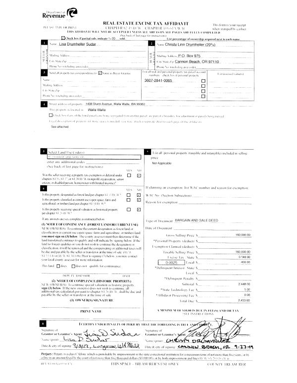 | 5 | 10/30/2019 | BARGAIN & | BARGAIN & SALE DEED | DRUMHELLER LAURA L ET AL | DRUMHELLER CHRISTY LINN ET AL | | | $21,173.00 | 137986 | 2019-08845 |