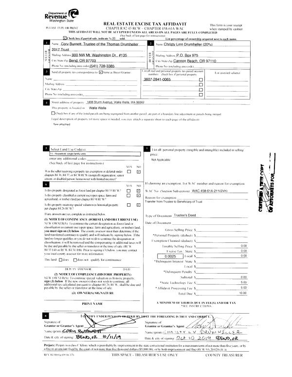 | 4 | 10/30/2019 | TRUSTEES D | TRUSTEE'S DEED | THOMAS DRUMHELLER 2017 TRUST | DRUMHELLER CHRISTY LINN ET AL | | | $0.00 | 137970 | 2019-08842 |