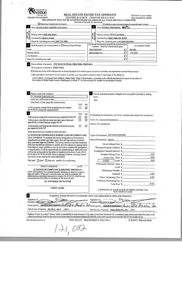 | 3 | 12/02/2011 | WARRANTY D | WARRANTY DEED | "CARTER, JOYCE & GUY" | | | | | 121082 | 2011-09506 |