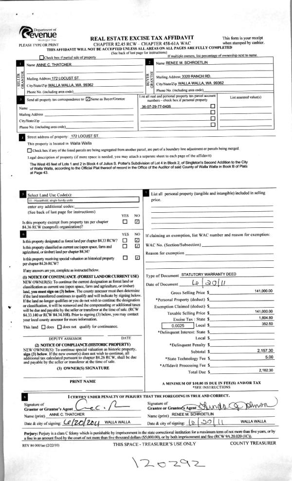 | 2 | 06/22/2011 | WARRANTY D | WARRANTY DEED | THATCHER, ANNE C | SCHROETLIN, RENEE M | | | $141,000.00 | 120292 | 2011-04820 |