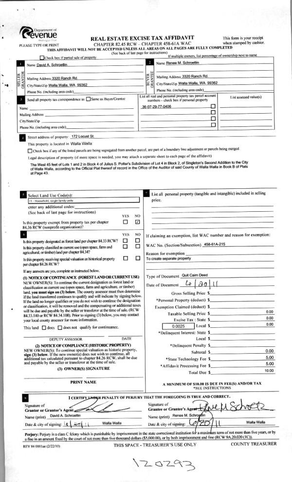 | 1 | 06/22/2011 | QCD | QUIT CLAIM DEED | SCHROETLIN, DAVID A | SCHROETLIN, RENEE M | | | $0.00 | 120293 | 2011-04821 |