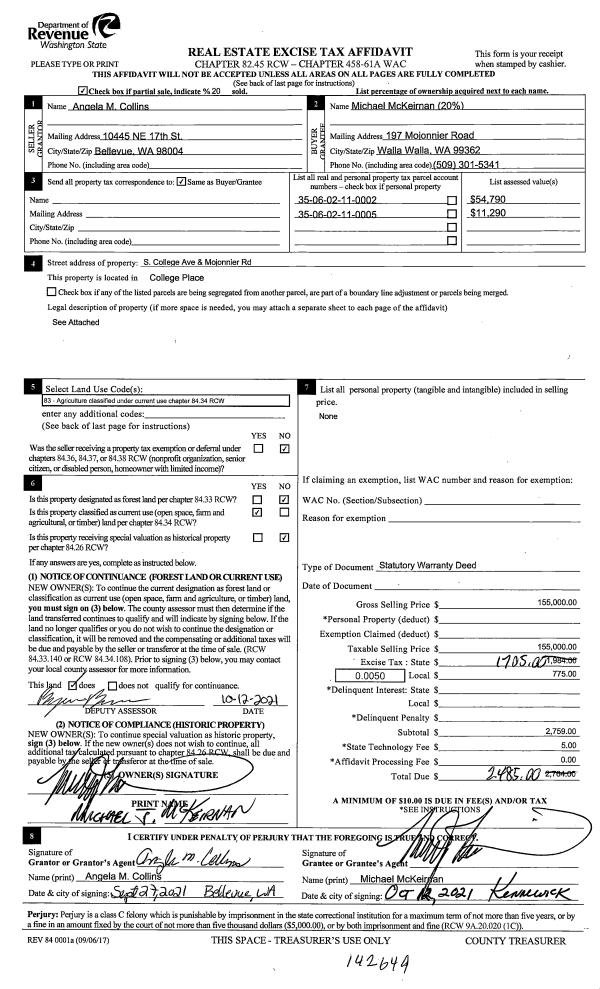 | 5 | 09/27/2021 | SWD | STATUTORY WARRANTY DEED | MC KEIRNAN MICHAEL | MCKEIRNAN MICHAEL J | | 2-PARCELS | $155,000.00 | 142649 | 2021-12394 |