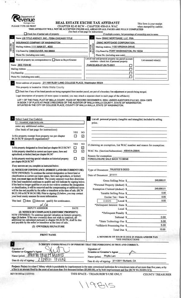 | 2 | 08/04/2011 | WARRANTY D | WARRANTY DEED | GMAC MORTGAGE LLC | SECRETARY OF HOUSING & URBAN D | | | $230,352.00 | 120499 | 2011-06090 |
