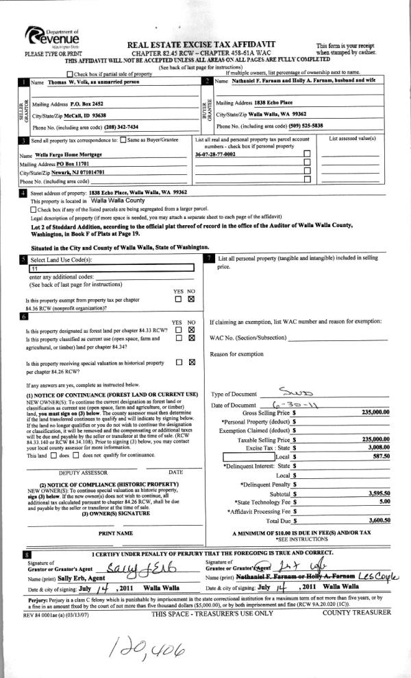 | 2 | 07/15/2011 | WARRANTY D | WARRANTY DEED | VOLK, THOMAS W | FARNAM, NATHANIEL F & HOLLY A | | | $235,000.00 | 120406 | 2011-05496 |