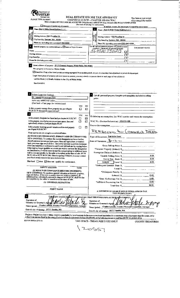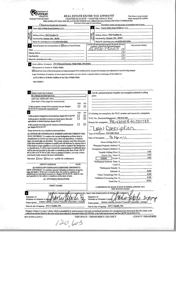 | 1 | 04/10/2003 | WARRANTY D | WARRANTY DEED | WASHINGTON VINTNERS LLC | RED & WHITE BRAND BLD LLC | | | | 101809 | 2003-05068 |