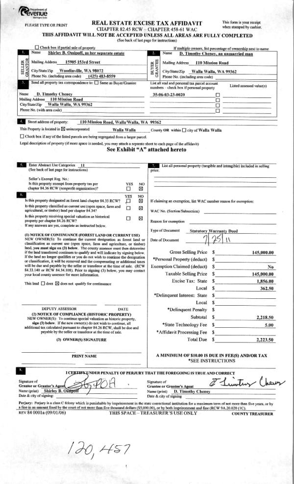 | 7 | 07/25/2011 | WARRANTY D | WARRANTY DEED | OSSIPOFF, SHIRLEY | CHENEY, D TIMOTHY | | | $145,000.00 | 120457 | 2011-05773 |