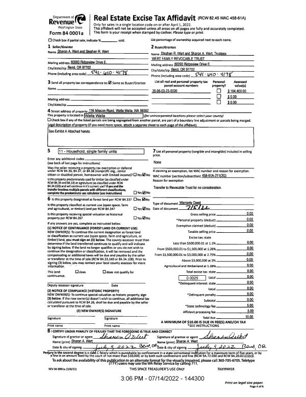 | 2 | 07/05/2022 | WARRANTY D | WARRANTY DEED | WERT SHARON A & STEPHEN R | WERT FAMILY REVOCABLE TRUST | | | $0.00 | 144300 | 2022-05986 |