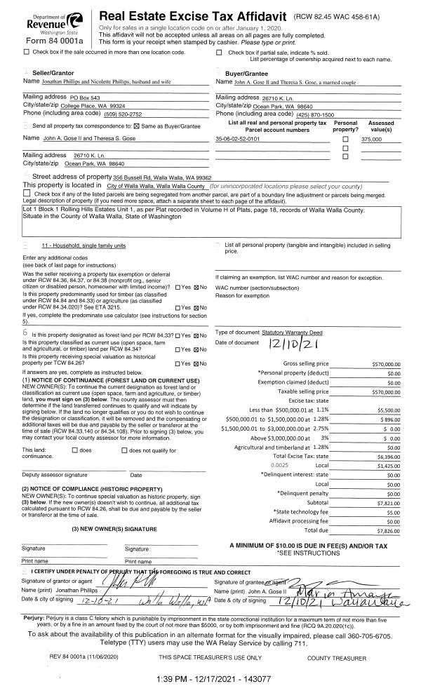 | 1 | 12/17/2021 | SWD | STATUTORY WARRANTY DEED | PHILLIPS JONATHAN & NICOLETTE | GOSE JOHN A II & THERESA S | | | $570,000.00 | 143077 | 2021-14815 |