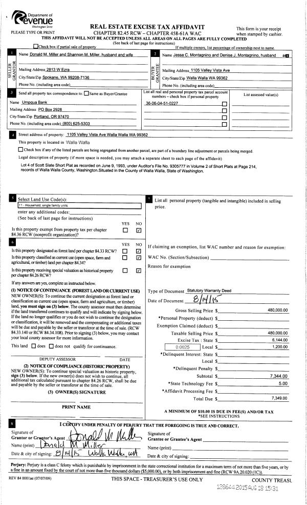 | 4 | 08/18/2015 | SWD | STATUTORY WARRANTY DEED | MILLER DONALD M & SHANNON M | MONTAGNINO JESSE C & DENISE J | | | $480,000.00 | 128644 | 2015-07240 |
