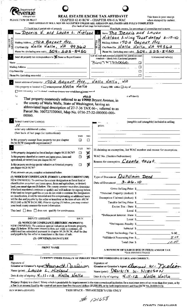 | Mailing Address: | 85099 HURST LN MILTON FREEWATER, OR 97862 | % Ownership: | 100.0000000000% |