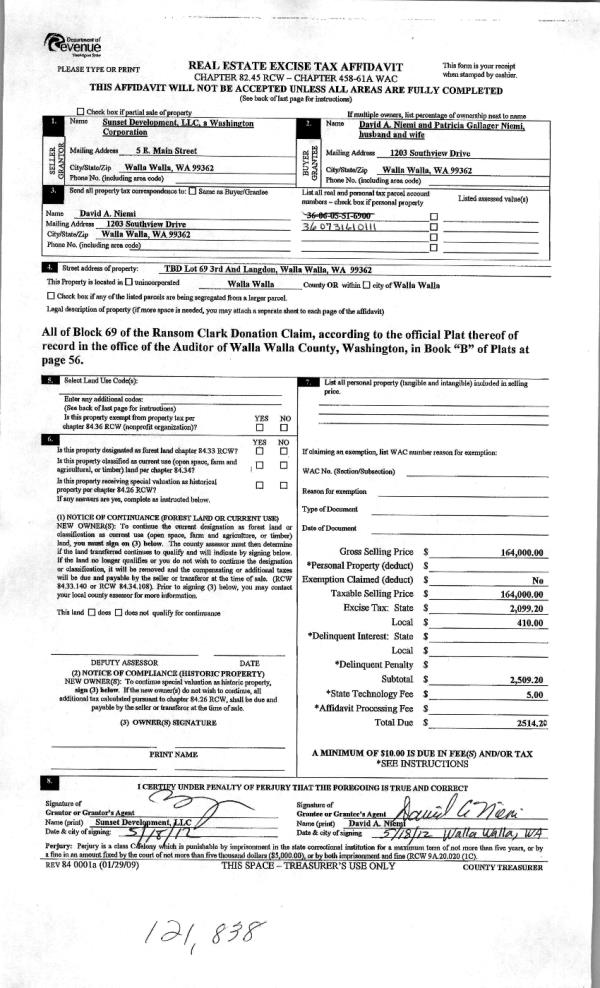 | Mailing Address: | 1203 SOUTHVIEW DR WALLA WALLA, WA 99362 | % Ownership: | 100.0000000000% |