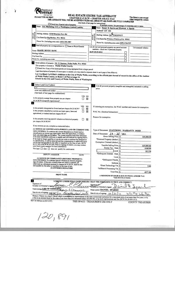 | 3 | 10/31/2011 | WARRANTY D | WARRANTY DEED | TLC MARKETING LLC | SPARKS, DANIEL R & ELIZABETH A | | | $325,000.00 | 120891 | 2011-08463 |