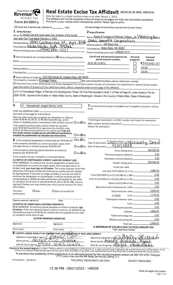 32791 WHITMAN COLL BOARD OF TRUSTEES for Year 2025 - 2026