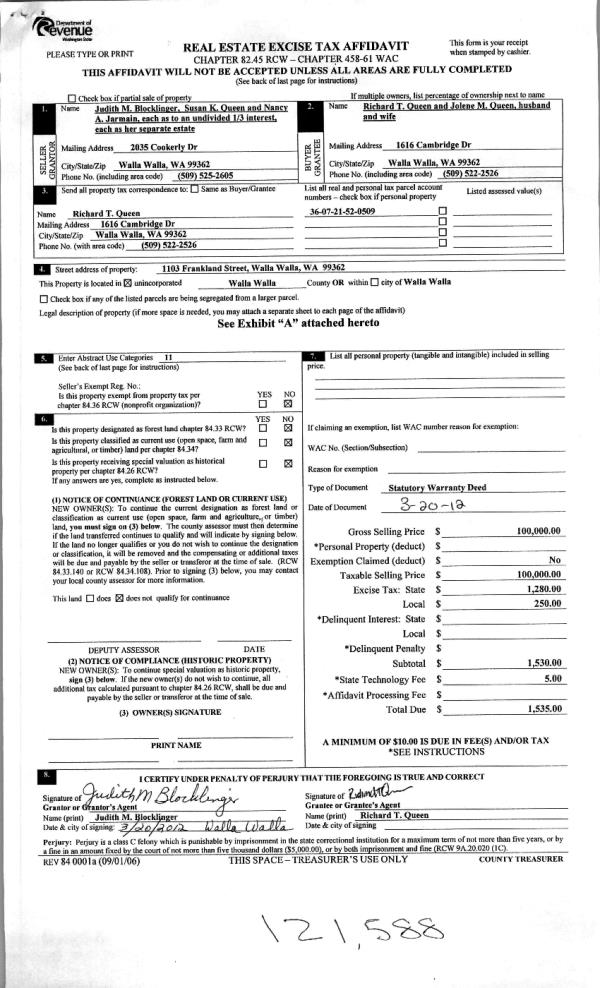 | Mailing Address: | 1103 FRANKLAND ST WALLA WALLA, WA 99362 | % Ownership: | 100.0000000000% |