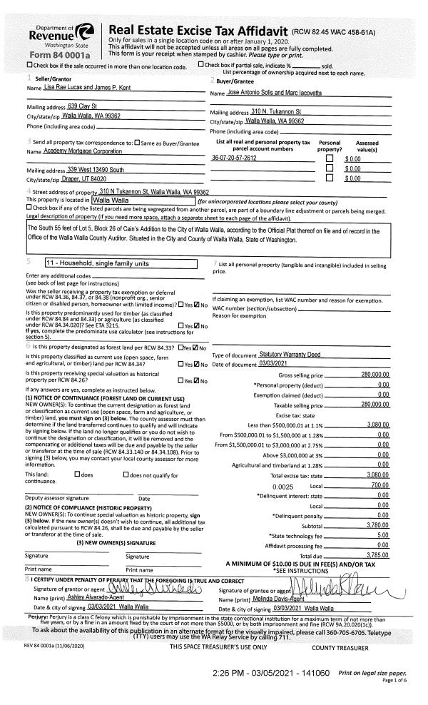 | 1 | 03/05/2021 | SWD | STATUTORY WARRANTY DEED | KENT JAMES P | SOLIS JOSE ANTONIO & MARC IACOVETTA | | | $280,000.00 | 141060 | 2021-02573 |