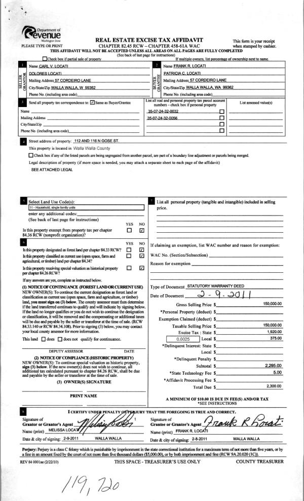 | Mailing Address: | 519 EQUESTRAIN WAY WALLA WALLA, WA 99362 | % Ownership: | 100.0000000000% |