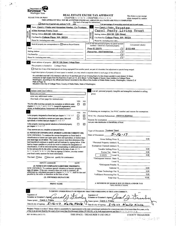 | 2 | 05/16/2017 | TRUSTEES D | TRUSTEE'S DEED | FRISBY NORMAN TRUST #53571 | PERRY CAROL LIVING TRUST | | | $0.00 | 132405 | 2017-03717 |