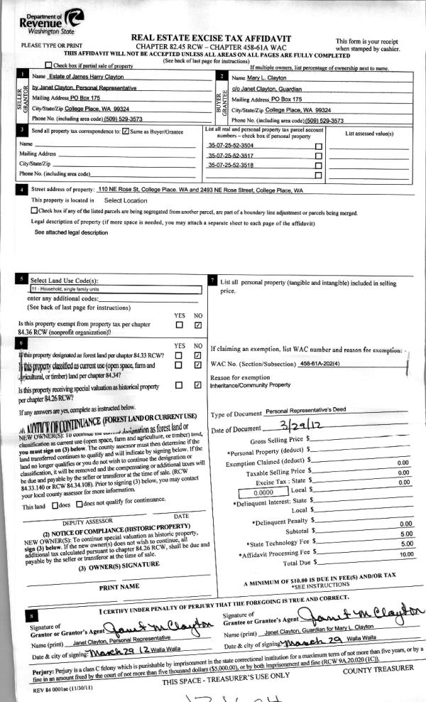 | 1 | 11/07/2017 | DPR | DEED OF PERSONAL REPRESENTATIVE | CLAYTON MARY L | CLAYTON JANET M | | | $0.00 | 133586 | 2017-08998 |