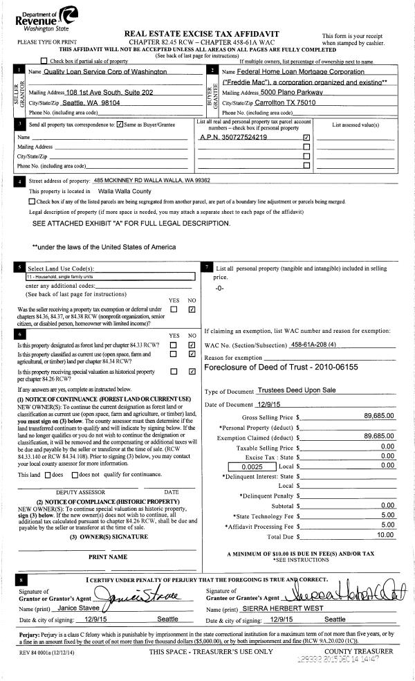 | Mailing Address: | 485 MCKINNEY RD WALLA WALLA, WA 99362 | % Ownership: | 100.0000000000% |