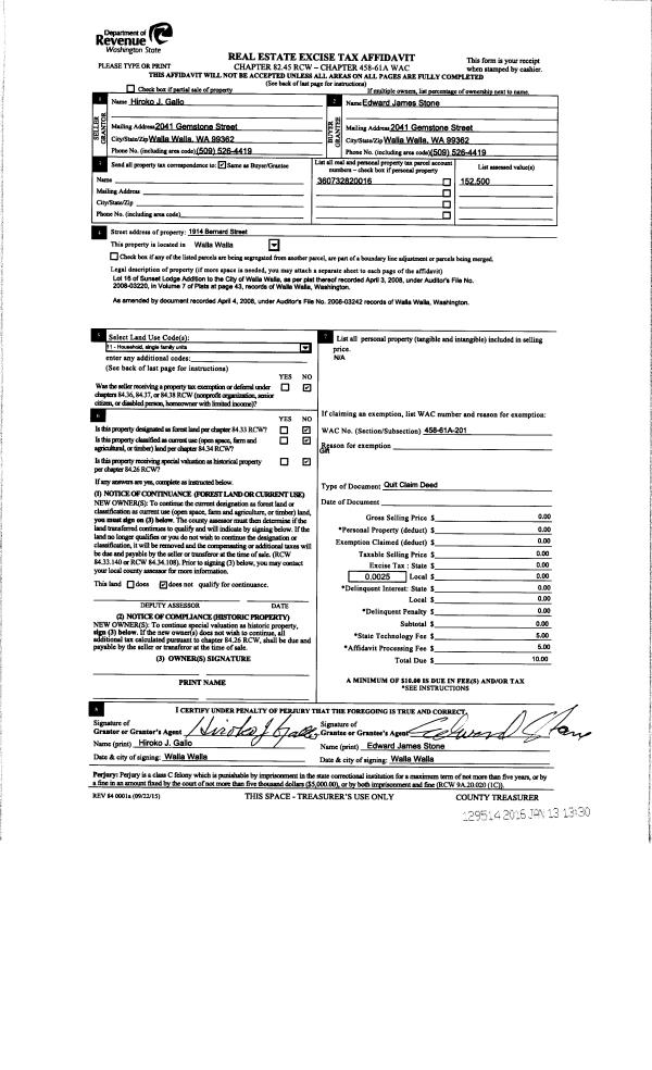 WALLA WALLA, WA 99362 | SUNSET LODGE ADDITION LOT 45 |