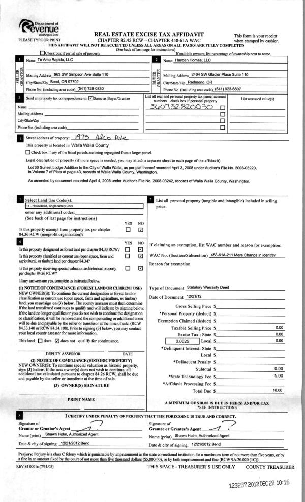WALLA WALLA, WA 99362 | SUNSET LODGE ADDITION LOT 28 |