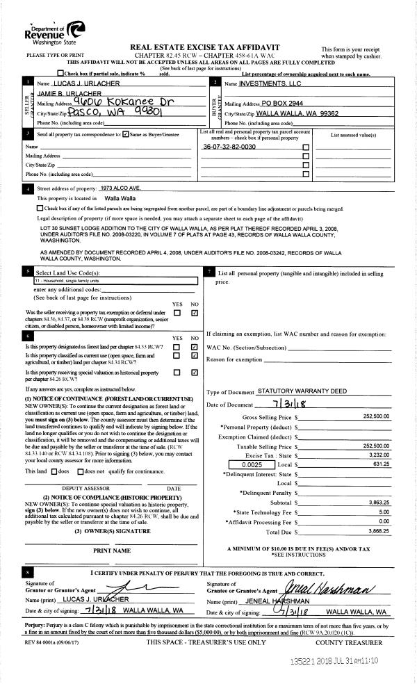 WALLA WALLA, WA 99362 | SUNSET LODGE ADDITION LOT 7 |