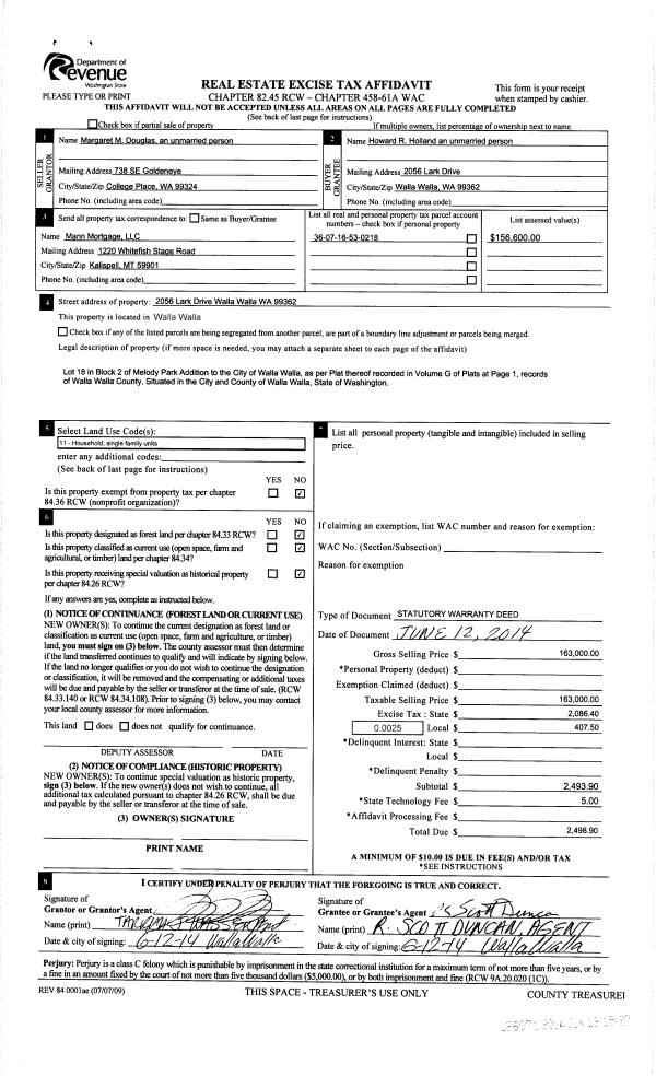 | 3 | 06/13/2014 | SWD | STATUTORY WARRANTY DEED | DOUGLAS MARGARET | HOLLAND HOWARD R | | | $163,000.00 | 126071 | 2014-04099 |