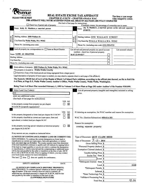 | 3 | 03/12/2014 | QCD | QUIT CLAIM DEED | MADDERN KELLY R | MADDERN JAY E | | | | 125562 | 2014-01706 |