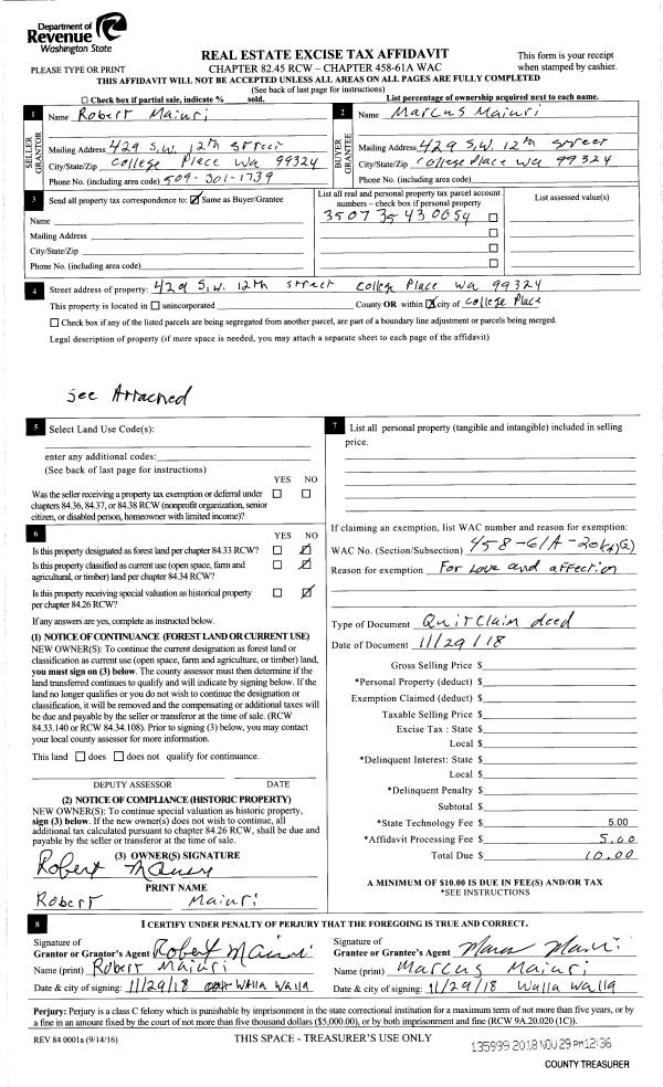| Mailing Address: | 429 SW 12TH ST COLLEGE PLACE, WA 99324 | % Ownership: | 100.0000000000% |