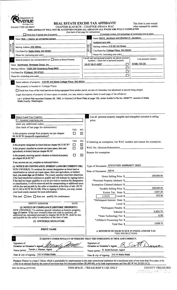 | 2 | 03/07/2014 | SWD | STATUTORY WARRANTY DEED | KEENE RICK I | JACOBSON NEIL E & SHERILYN D | | | $229,000.00 | 125532 | 2014-01596 |