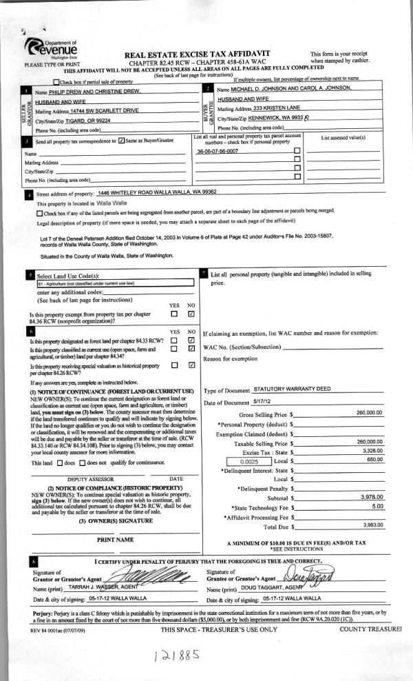 | 2 | 05/29/2012 | WARRANTY D | WARRANTY DEED | DREW, PHILIP & CHRISTINE | JOHNSON, MICHAEL D & CAROL A | | | $260,000.00 | 121885 | 2012-04418 |