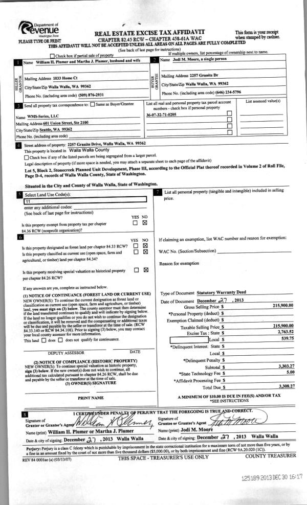 | 1 | 12/30/2013 | WARRANTY D | WARRANTY DEED | PLUMER WILLIAM H & MARTHA J | MOORE JODI M | | | $215,900.00 | 125189 | 2013-12348 |